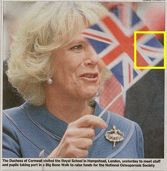 We have been sent in so many examples of the Unon flag being flown upside down that we have created this new page (see original page). It is "lese Majeste" (which means: insulting the Crown), and is theoretically still
