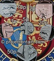 The coins, when put together, create parts of the Shield of the Royal Arms.