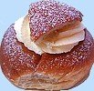 "In Sweden it is called Fettisdagen (Fat Tuesday). We eat a Fettisdag buller. This is a round bun with the middle part scooped out and replaced with Marzipan with whipped cream. The top of the bun is placed back on sprinkled with icing sugar."