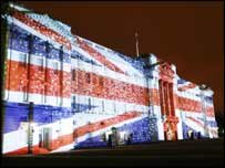 Even Buckingham Palace entered into the Christmas spirit by being lit up during Christmas 2003. From Christmas Eve, projectors "wrapped" the Palace in a giant Union Jack and wrapping paper.