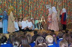 The Nativity Play recreates the scene of Jesus’ birth in the stable and tells of how Mary and Joseph were visited by the Shepherds and Wise Men. The parts of Mary, Joseph, the Shepherds and the Wise Men are played by the children. In our school, the Year 3 children perform a Nativity to the whole school and to proud parents.