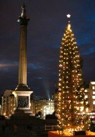 In London, near the statue of Lord Nelson in Trafalgar Square, a giant Christmas tree is set up and decorated with great ceremony each year. The tree is a thank you gift from the people of Oslo, Norway. During the Second World War, King Haakon of Norway was forced into exile in England when the Germans occupied his country. Since 1947, Norway has expressed its thanks for the help of the British people by continuing to send a huge Norwegian spruce to be shared by all.