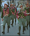 On the first Monday after September 4th, in a town called Abbots Bromley in Staffordshire, a very picturesque custom takes place. It is called the Horn Dance. Six men hold masks on sticks which have long reindeer horns attached to them.
